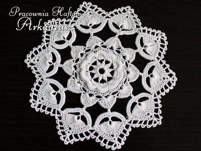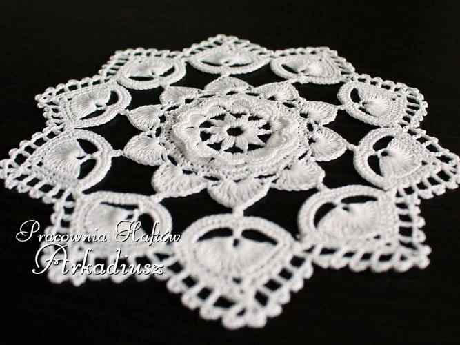 Śliczna mała serwetka koniakowska w kolorze białym. Serweta szydełkowa wykonana ręcznie przez koronczarkę z Koniakowa.