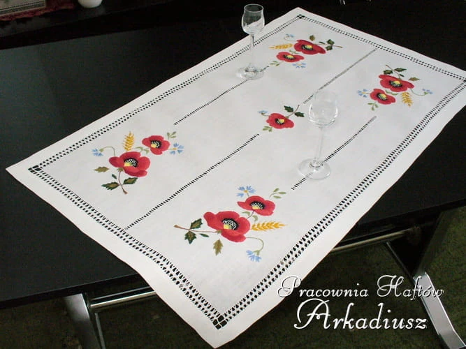 Bieżnik haftowany ręcznie "Maki z kłosem" 49x83