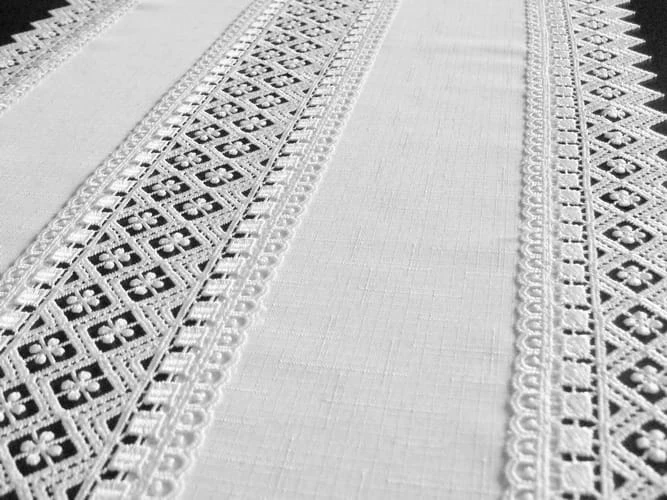 Białe bieżniki z gipiurą to elegancka dekoracja stołu wykonana z plamoodpornej tkaniny o wyglądzie lnu. Klasyczny design, łatwa pielęgnacja oraz dostępność w różnych rozmiarach sprawiają, że doskonale sprawdzą się na co dzień i od święta.