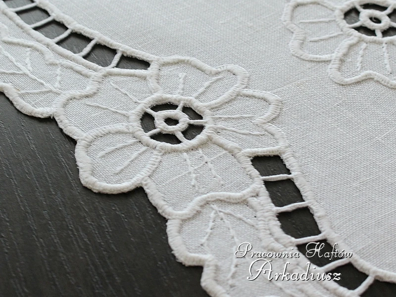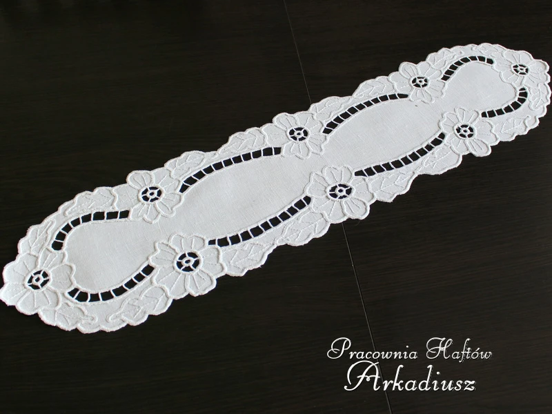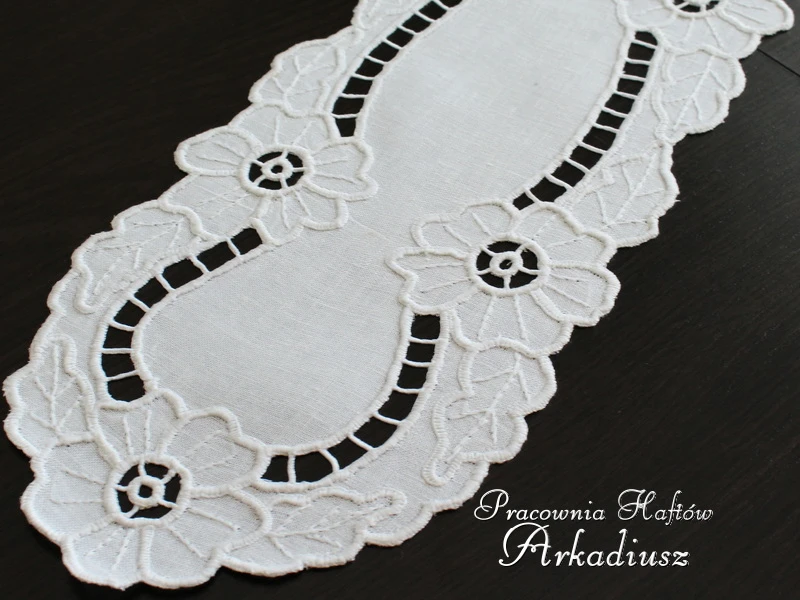 Bieżnik z ręcznym haftem richelieu 18x74