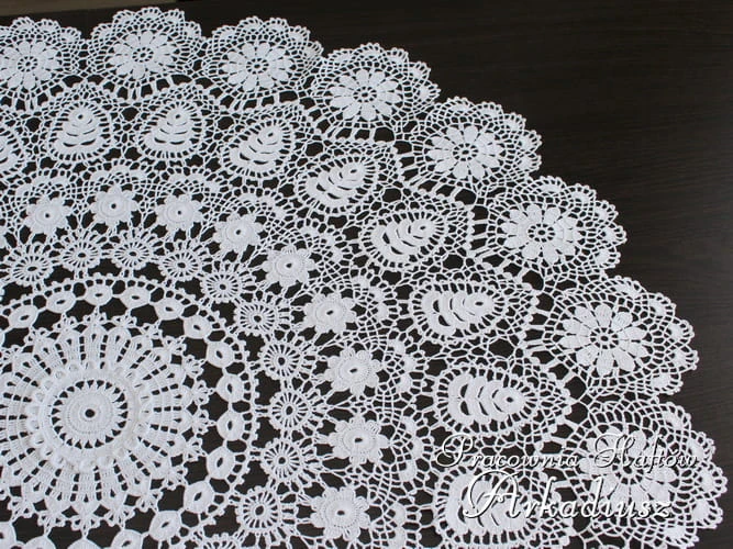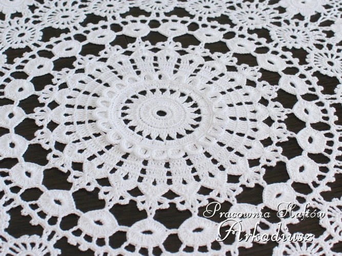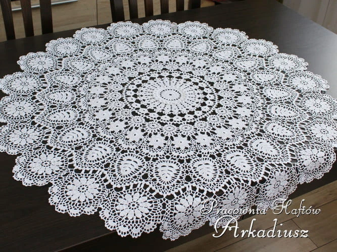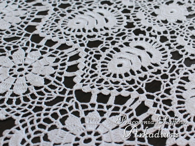 Biała oryginalna serweta z koronki koniakowskiej, Zrobiona ręcznie na szydełku z białego kordonku mercyzowanego 100% bawełna. Wykonana w koniakowskiej pracowni rękodzieła.