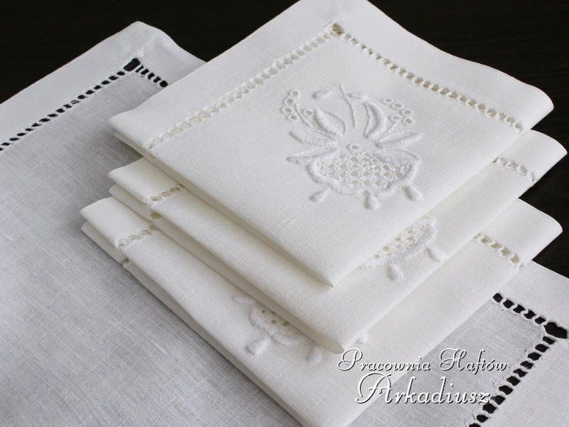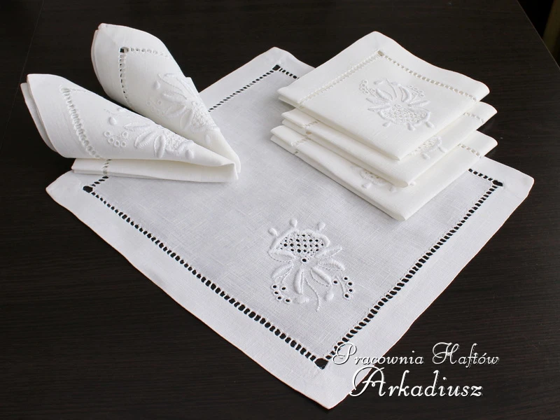 Komplet serwet haftowanych ręcznie 38x38 - 6 szt.