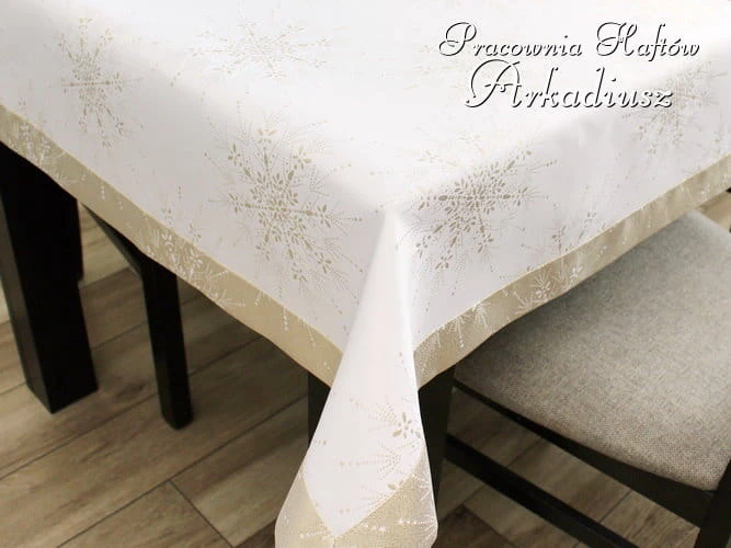 Luksusowe obrusy świąteczne "Śnieżynka" biało - złote