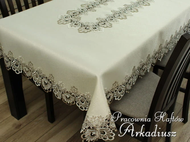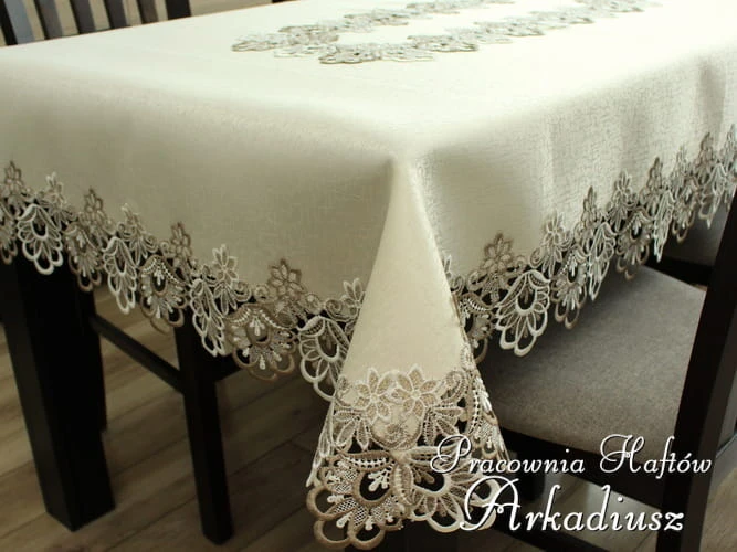 Obrus z gipiurą z kolekcji "Hania" beżowy