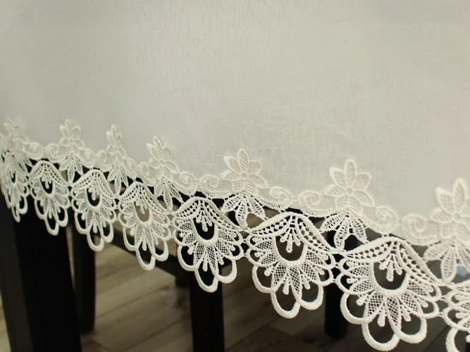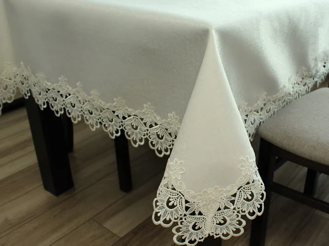Mamy do zaoferowania obrusy w kolorze ekri zdobione koronką gipiurową, dostępne w kilku wersjach rozmiarowych. Obrusy zostały wykonane z trwałego poliestru, dlatego są łatwe w utrzymaniu czystości i bardzo elegancko się prezentują.